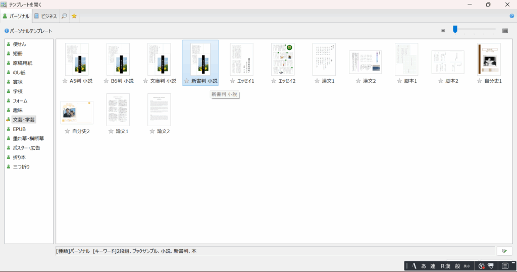 スタイルは一太郎標準の「新書判 小説」をカスタマイズしたモノとなります。